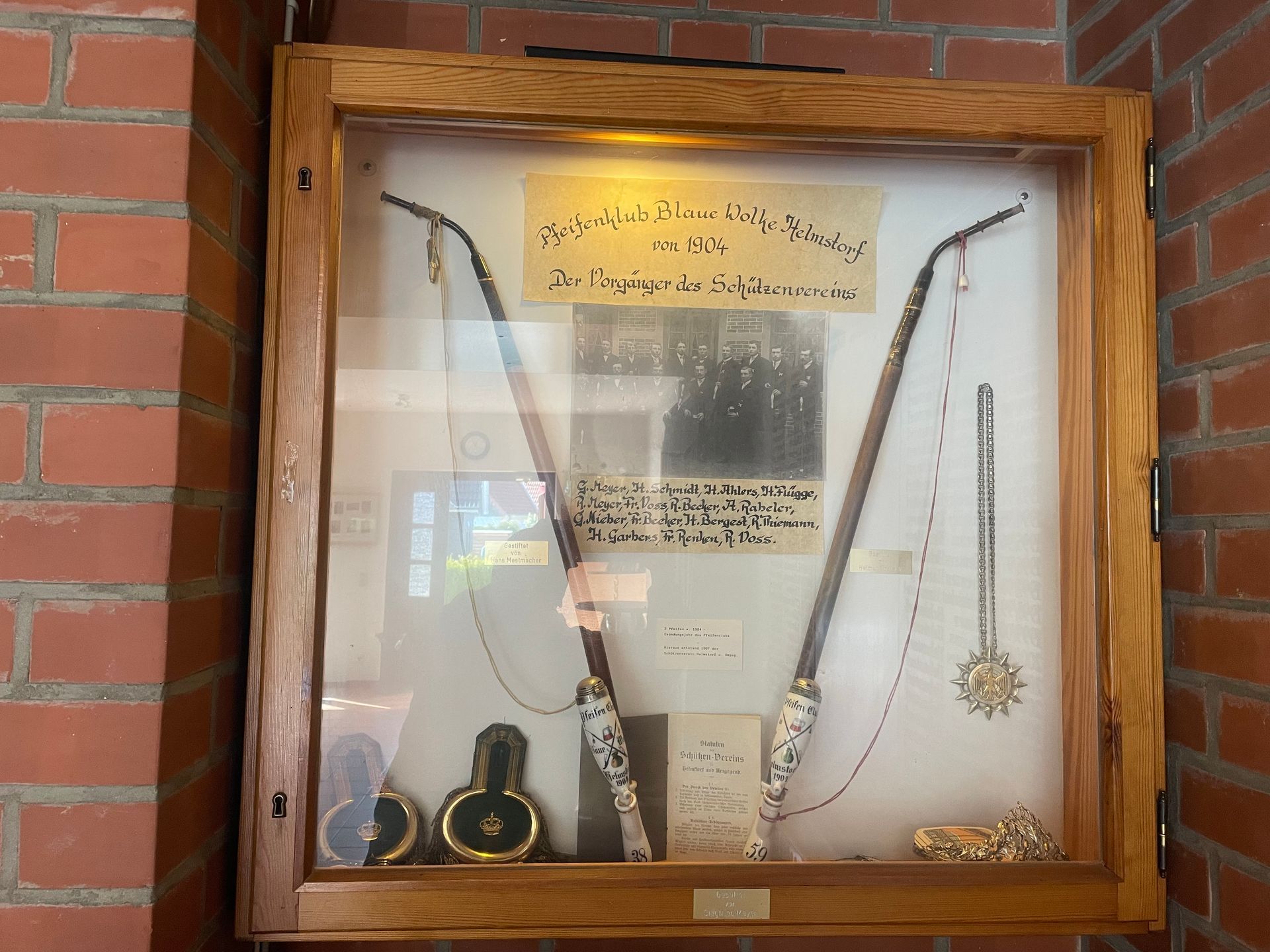 Der Verein ist aus dem ,,Pfeifenclub" Helmstorf, welcher hier im Ort seit langem bestand, hervorgegangen. Die Mitglieder des Klubs trafen sich regelmäßig. Bei diesen Zusammenkünften wurde aus langen Pfeifen geraucht und der Geselligkeit gepflegt. Mit Begeisterung aber wurde auch schon von Mitgliedern geschossen , ja sogar ein König wurde ausgeschossen. Er erhielt einen Lederorden. Beim Marschieren durch das Dorf wurde die Musik durch kräftigen Gesang ersetzt. Jedes Mal, wenn der Zug unter der Girlande hindurchmarschierte, wurde dreimal kräftig ,,Hurra" geschrien. Die Mitglieder dieses Klubs entschlossen sich 1907 einen Schützenverein zu gründen, der sofort regen Zuspruch fand. Leider ist es aus oben erwähnten Gründen nicht möglich, eine fortlaufende Geschichte zu erzählen. Man kann an Hand einiger alter Protokolle ein paar Besonderheiten herausgreifen.